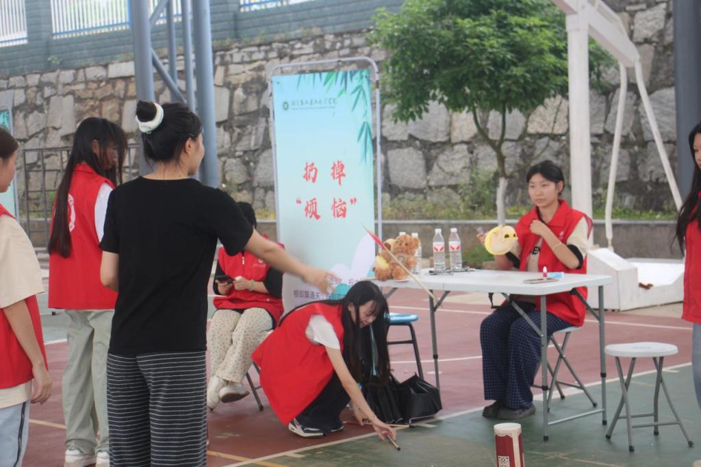 本次游园会设置“以德育心、以智慧心、以体强心、以美润心、以劳健心”五大主题区域,开展了“幸运大挑战”“心理知识我知道”“说说我的心里‘画’”“不倒森林”“扔掉‘烦恼’”等特色活动。将心理健康知识与互动体验深度融合。