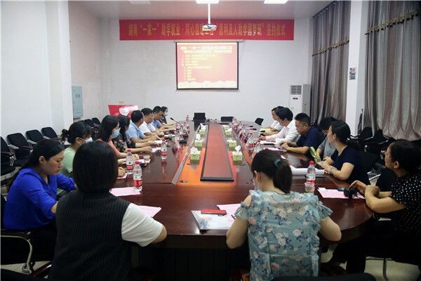 6月9日下午,湖南“一家一”助学就业·同心温暖工程“思利及人助学圆梦班”与我校在办公楼301会议室举行签约仪式。省委统战部湖南中华职业教育社副秘书长冯立兵,省市场监督管理局反垄断局局长韦翔,省温暖工程基金会理事长谭圣林,学院党委书记杨文伟,党委委员、副校长邓兴国等领导出席签约仪式。仪式由学生工作与保卫处处长黄军华主持。