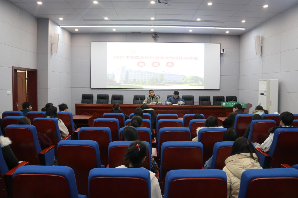 寒假将至,为把党和国家对家庭经济困难学生的关怀落实落细,确保将学校的温暖和关爱及时送达给最需要的同学,学生资助管理中心于2021年1月14日在图书馆视频会议室召开今年寒假走访慰问家庭经济困难学生座谈会。学生资助管理领导小组办公室主任黄军华、相关老师、各二级学院资助干事及受助学生参与座谈。本次座谈会由资助管理中心主任戴维主持。