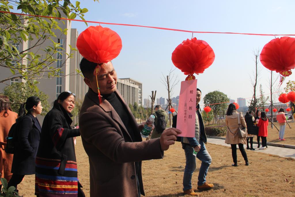 3月1日,学校食堂前坪挂满了大红灯笼和写满灯谜的彩纸,由工会举办的“猜灯谜闹元宵”活动吸引了众多教职工。