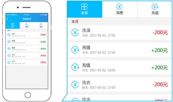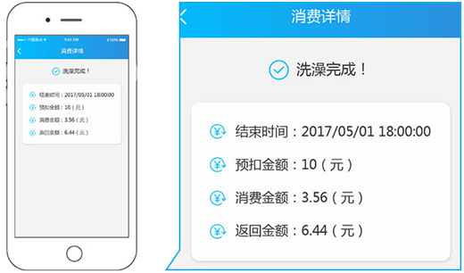8、洗澡结束,形成账单并退回剩余金额。