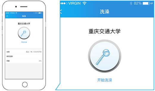 6、[搜索洗澡/扫码洗澡]:设备连接成功,点击“开始洗澡”按钮,进入“洗澡中”状态。