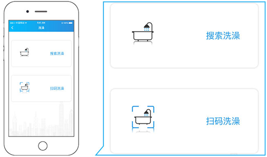 2、选择连接设备的模式,“搜索洗澡”或“扫码洗澡”。