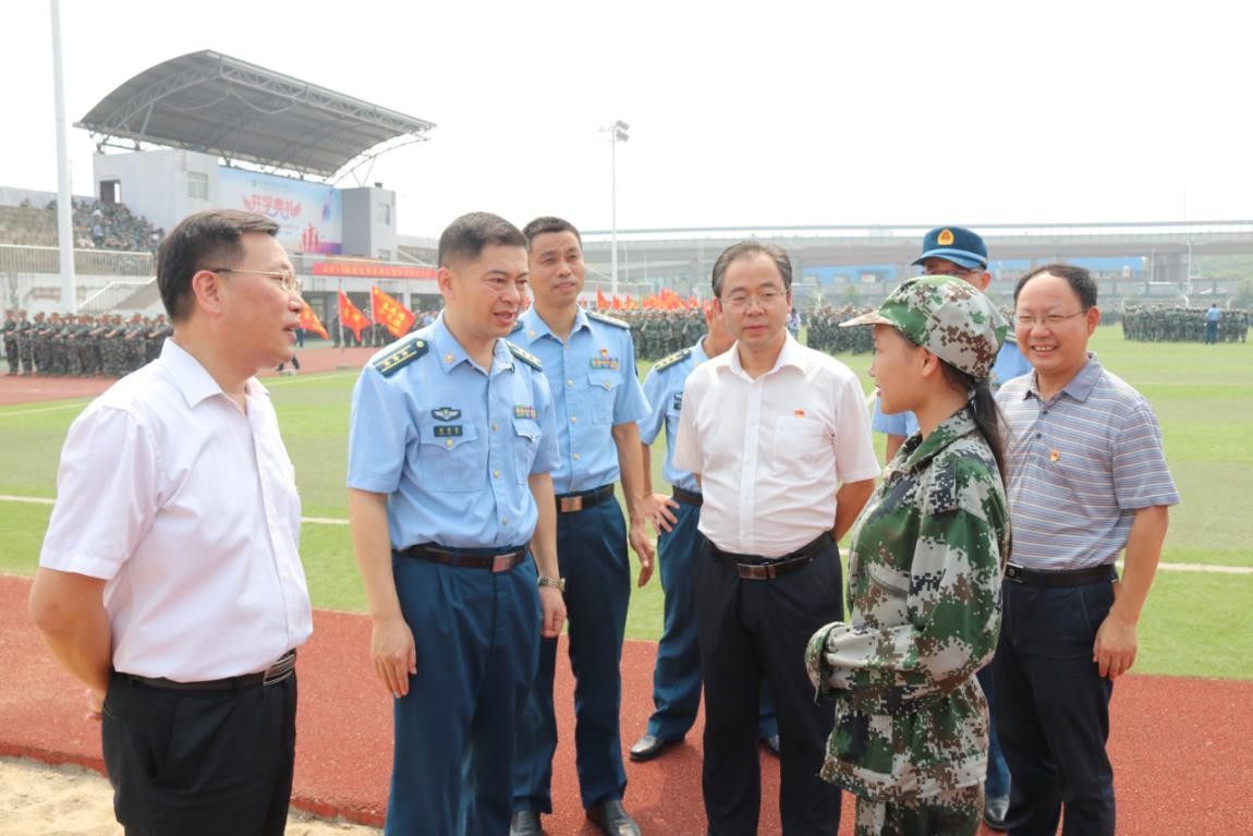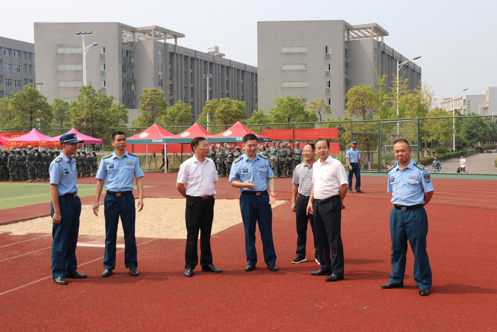 9月11日上午,承担我校军训任务的95333部队领导朱建军和上级领导杨朱富、任波来我校检查军训工作。学校党委书记杨文伟、校长虢剑波、副校长邓兴国陪同部队领导进行了实地调研,并亲切的询问新生的军训感受。