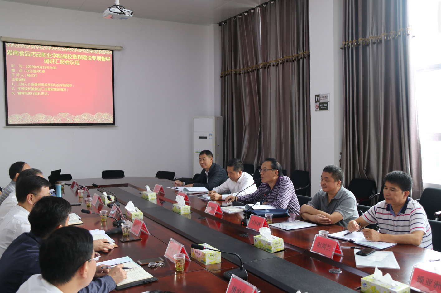 9月19日,省教育厅督导组6名专家来校督导章程建设专项工作。上午的汇报会在办公楼301会议室举行,全体在校校领导、相关部门负责人及部分教职工代表参加会议。