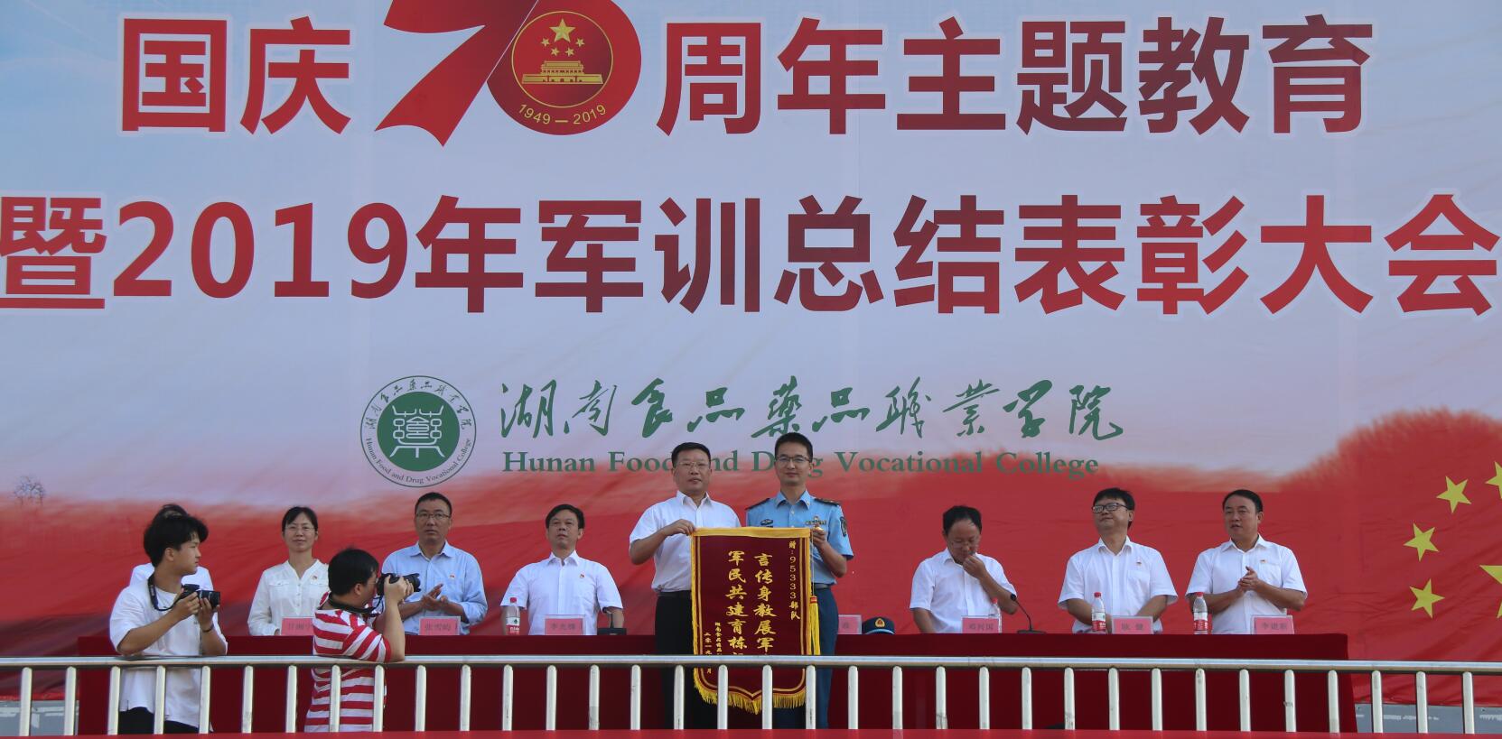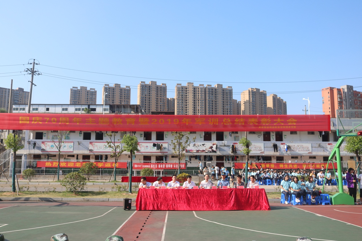 在总结军训成果的基础上,学校主要领导畅谈新中国成立70周年所取得的成就,介绍新湖南建设所取得的成果,为全体师生上了一堂爱国主义教育大课。他们豪情满怀的指出,伟大的祖国历经七十载的风霜雨雪、荆棘林莽,一代代中华儿女栉风沐雨、奋发图强,中国正一步一步走向成熟、走向腾飞。经济实力和综合国力跻身世界强国行列,已成为世界第二大经济体、第一大工业国、第一大货物贸易国、第一大外汇储备国;人民的生活水平和质量得到全面改善,社会文明程度显著提升,社会主义文化繁荣发展,国家文化软实力和中华文化影响力显著提升,国际地位空前提高,中华民族伟大复兴离我们越来越近。湖南作为中国共产党建党和中国革命的重要策源地,有着光荣革命传统的红色沃土,自党的十八大以来,湖湘儿女认真学习贯彻习近平新时代中国特色社会主义思想和习近平总书记对湖南工作重要讲话指示精神,立足“一带一部”定位,大力实施创新引领开放崛起战略,实现了从贫困落后到全面小康的跨越、从百废待兴到百业兴旺的跨越、从内陆封闭到创新开放的跨越、从温饱不足到人民幸福的跨越。在党的正确领导下,正勠力同心、奋力前行,在建设富饶美丽幸福新湖南的壮丽征程中阔步前行。希望同学们坚定跟党走的信心,不忘初心,牢记使命,弘扬奋斗精神,牢记习近平总书记的嘱托,不负韶华,努力学习,建功立业,勇做走在时代前列的奋进者、开拓者、奉献者,毫不畏惧一切艰难险阻,在劈波斩浪中开拓前进,在披荆斩棘中开辟天地,在攻坚克难中创造业绩,用青春和汗水创造出让世界刮目相看的新奇迹,以新作为向新中国成立70周年致敬。