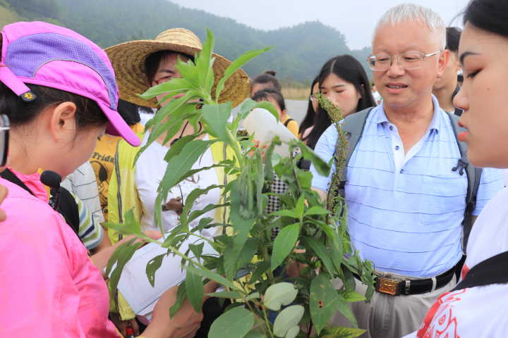 在一望无际,绿植密布的采药现场,同学们携带锄头、剪刀、记录本、标本牌等等。在带队老师的指导下采药认药,收集标本,进行登记。同学们怀着浓厚的兴趣,把课堂理论与现场实际一一印证。对此,林祁研究员对此给予高度评价。