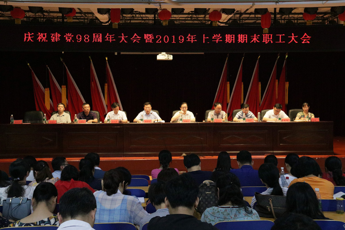 7月2日,学校在报告厅召开了庆祝中国共产党建党98周年大会暨2019年上学期期末职工大会。全体教职工参加会议,党委副书记、副校长李光锋主持会议。