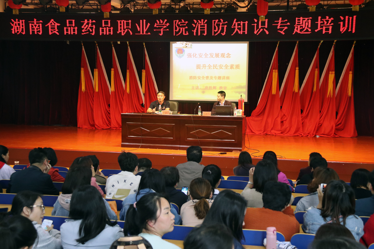 为进一步加强学校安全工作,营造安全、稳定、和谐的校园环境,提高教职工消防安全意识、消防法制观念和自防自救能力,有效预防和减少校园安全隐患和火灾事故的发生,5月7日下午2:30,由学生工作与保卫处组织全校教职工及学生代表、物业保安等,在学院报告厅举行2019年消防知识专题培训。此次培训特邀长沙市普消消防宣传咨询中心主任唐胜辉主讲,由学生工作与保卫处处长李建新主持。