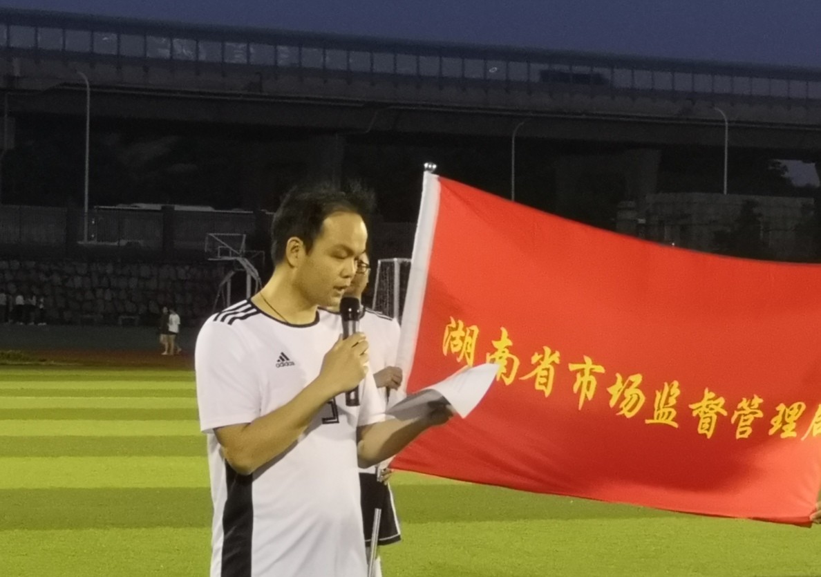 5月29日晚19: 30,湖南省市场监督管理局于食品药品职业学院足球场举行足球队建队仪式。省局副巡视员刘迎华、湖南食品药品职业学院党委书记杨文伟、省局机关党委专职副书记吴琪以及中南大学足球教授李彤出席了此次建队仪式。此次仪式由足球队副领队郭剑平主持。