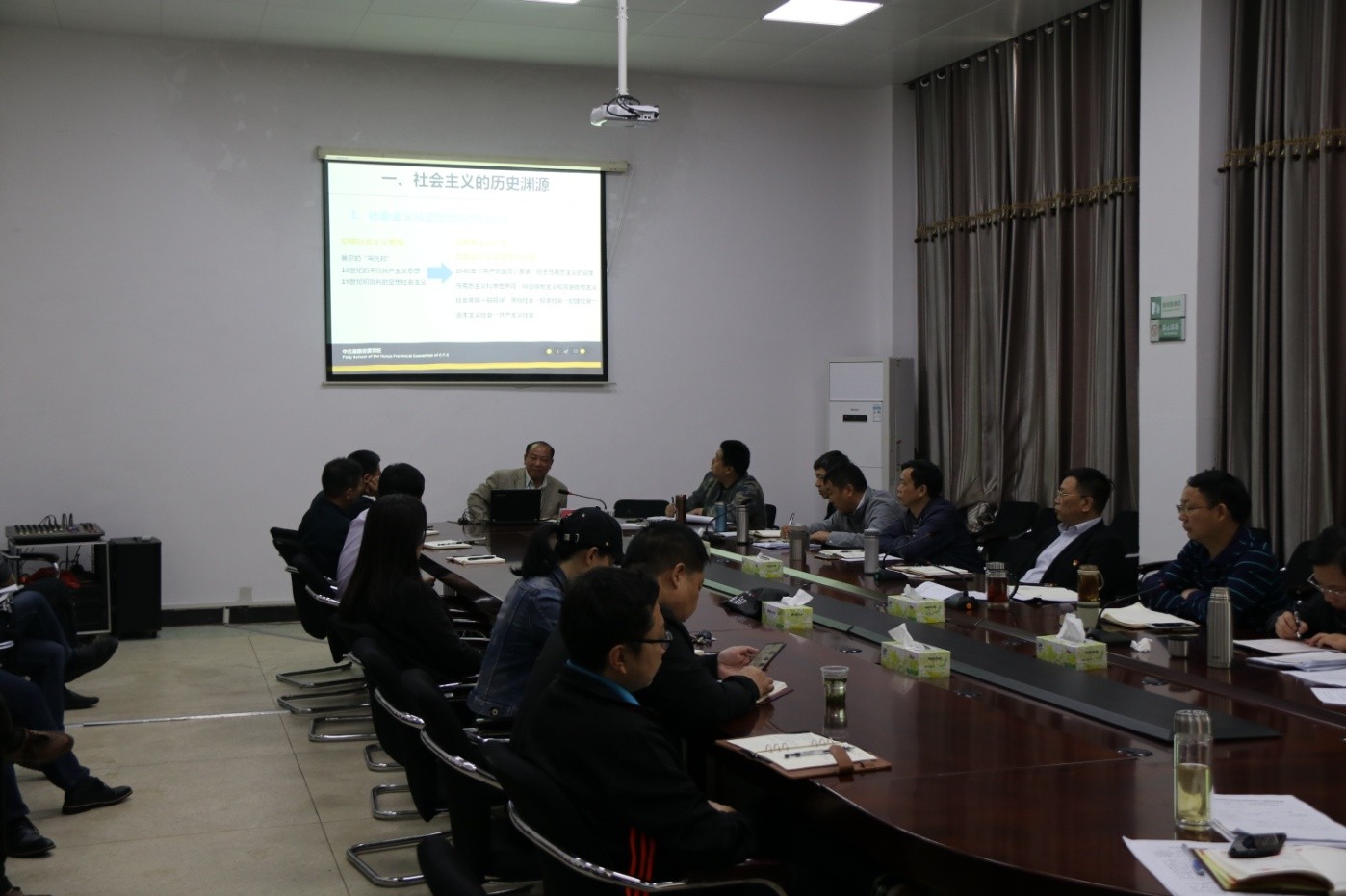 围绕“用科学思想武装头脑指导实践”主题,省直党校罗发仁教授作题为《习近平新时代中国特色社会主义思想的哲学基础》的专题讲座。以“社会主义的历史渊源”溯源,解读习近平新时代中国特色社会主义思想主要内容,对“八个明确”、“十四条坚持”进行分析,明确习近平新时代中国特色社会主义思想的哲学基础就是“辩证唯物主义”和“历史唯物主义”。党委委员、副校长唐荣华学习传达了《中国共产党重大事项请示报告条例》和《湖南食品药品职业学院章程》,指出要加强学习培训和宣传,加强实施督导。党委委员、宣传统战部部长欧健还传达了《中共中央关于加强党的政治建设的意见》的相关内容,指出坚信中国特色社会主义是科学社会主义理论逻辑和中国社会发展历史逻辑的辩证统一,走群众路线,政治立场事关根本。加强党的政治建设,必须加强党的全面领导。