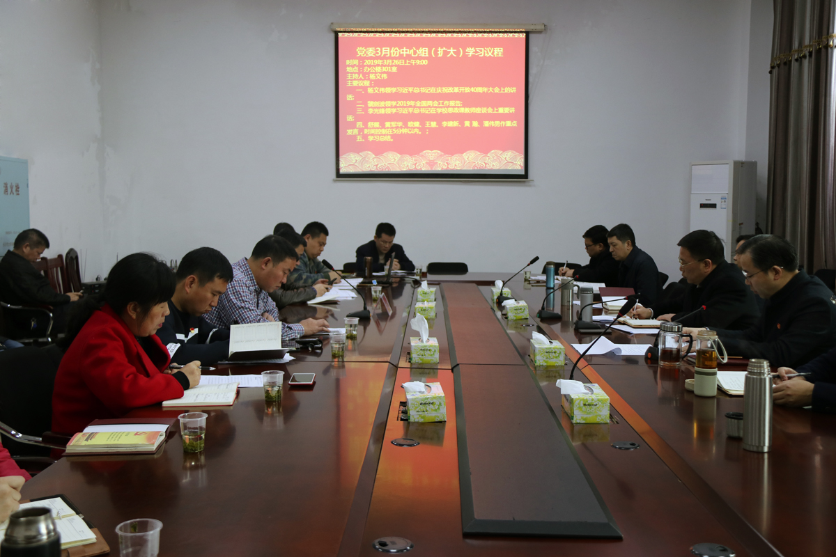 3月26日上午,在办公楼301会议室举行校党委3月份中心组(扩大)学习会议,校党委成员、校领导、各党总支书记以及部门、二级学院负责人参加了集中学习。学习由党委书记杨文伟主持。