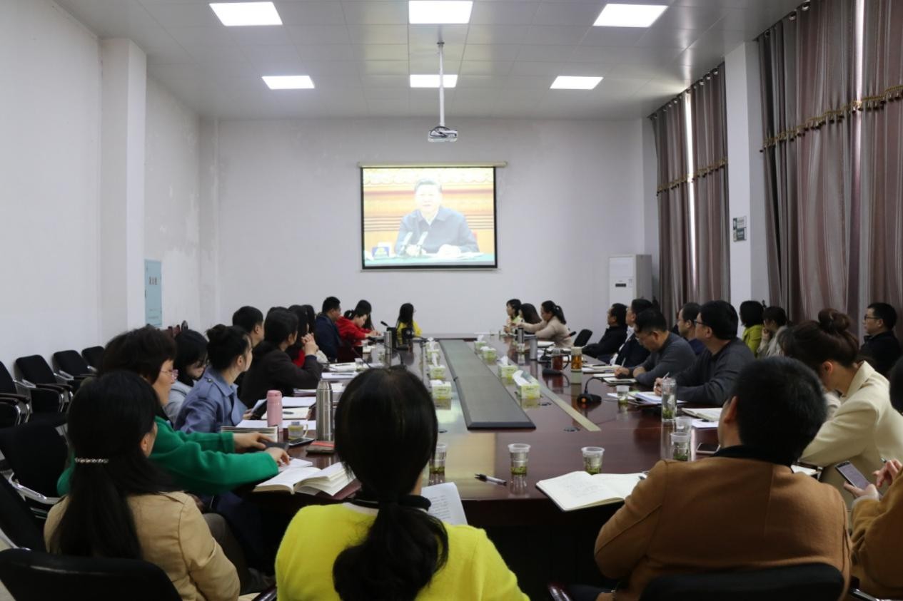 与会人员观看学习近平总书记在学校思政课教师座谈会上讲话精神视频