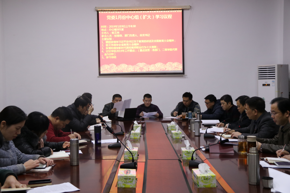 学习采取集中学习与研究讨论结合的方式进行。各党总支书记,各部门、二级学院负责人围绕落实全国、全省教育大会精神,结合学院“十三五”规划目标落实,推进2019年工作,提出了一系列的意见和建议。