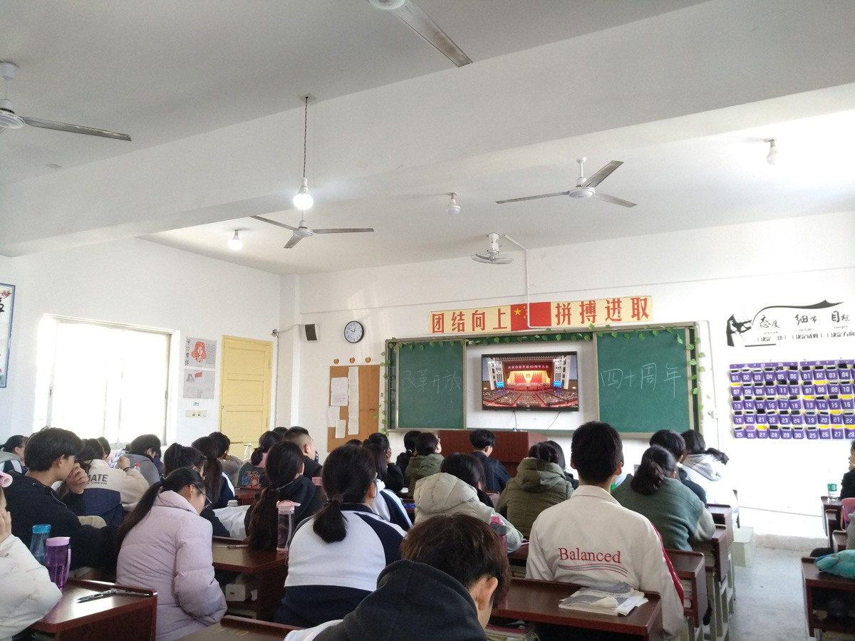 12月18日10时,庆祝改革开放40周年大会在人民大会堂隆重举行。我校组织党委成员、校级领导、机关总支在301会议室集中观看了大会现场直播,其他人员由各党总支组织师生观看,共同感受祖国强劲的脉搏,共同畅想祖国更加美好的明天。
