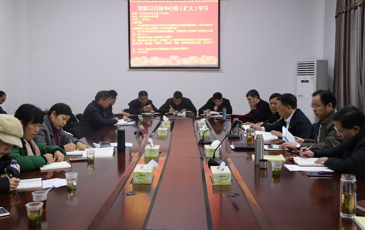 12月25日上午,在办公楼301会议室举行院党委12月份中心组(扩大)学习会议,院党委成员、院领导、党总支书记以及部门负责人参加了学习会议。学习会议由院党委书记杨文伟主持。