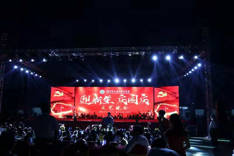 清风鼓动师生心中的爱国情怀,皓月印证食药职院人的激情。9月29日晚,湖南食品药品职业学院“迎新生,庆国庆”主题文艺晚会隆重举行。晚会由学生工作与保卫处承办,校团委和各二级学院协办,旨在欢庆祖国第69个诞辰,迎接新生加入学院大家庭。全校师生齐聚流光溢彩的现场,手舞荧光棒,齐声喝彩。