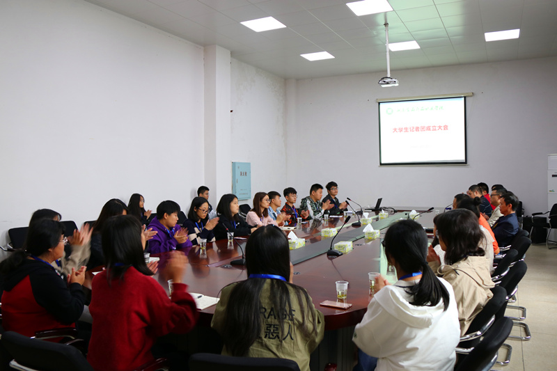 10月15日中午,大学生记者团成立大会在办公楼301办公室隆重举行。出席此次会议的有校党委副书记、副院长李光锋、宣传统战部部长欧建及宣传统战部全体成员。会议由宣传统战部副部邓纯主持,记者团全体成员参加。