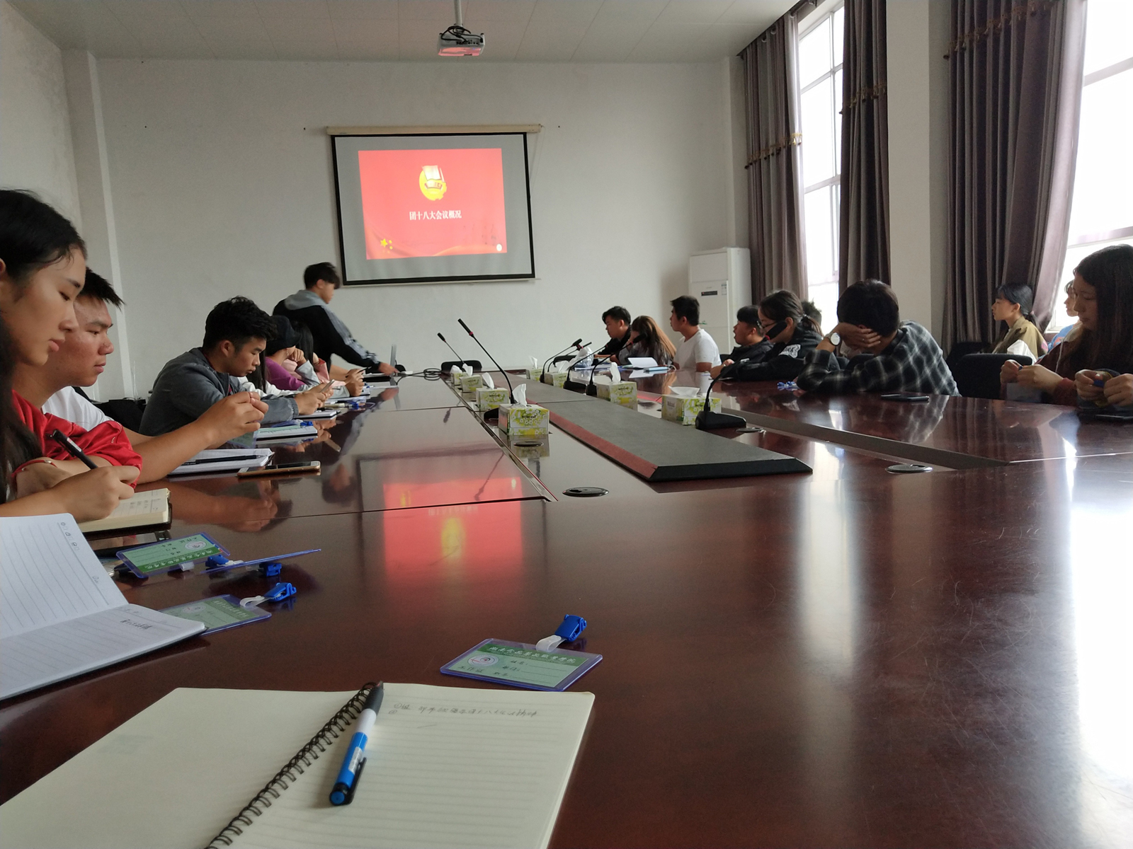 校团委组织监察部副部长万理文同学领学了中国共产主义青年团第十八次全国代表大会会议内容