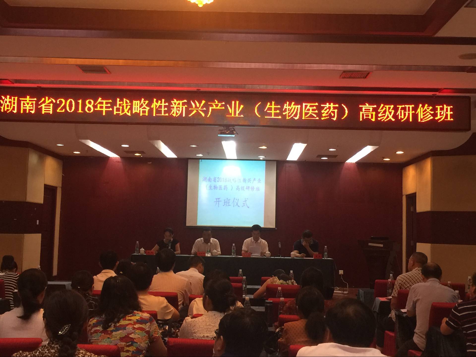 2018年7月12日上午九点,湖南省人力资源和社会保障厅主办、湖南食品药品职业学院承办的湖南省2018年战略性新兴产业(生物医药)高级研修班顺利开班。