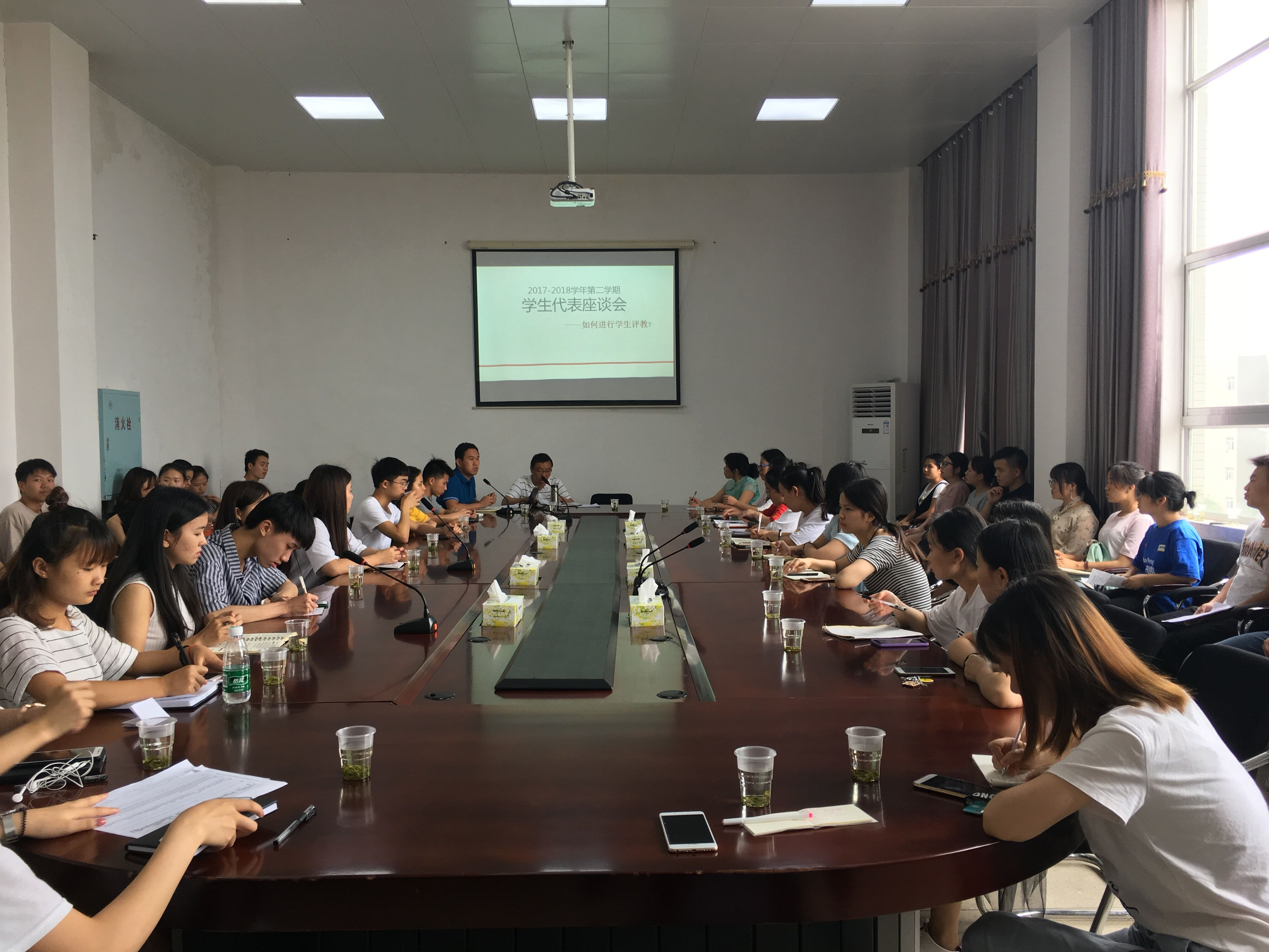 2018年6月12日下午,学校在办公楼301会议室召开了题为”如何进一步做好学生评教工作”的学生代表座谈会,教学质量督导处相关人员及50名来自各二级学院的学生代表参会。教学质量督导处处长王慧主持会议,分管领导张雪昀副校长出席会议并讲话。