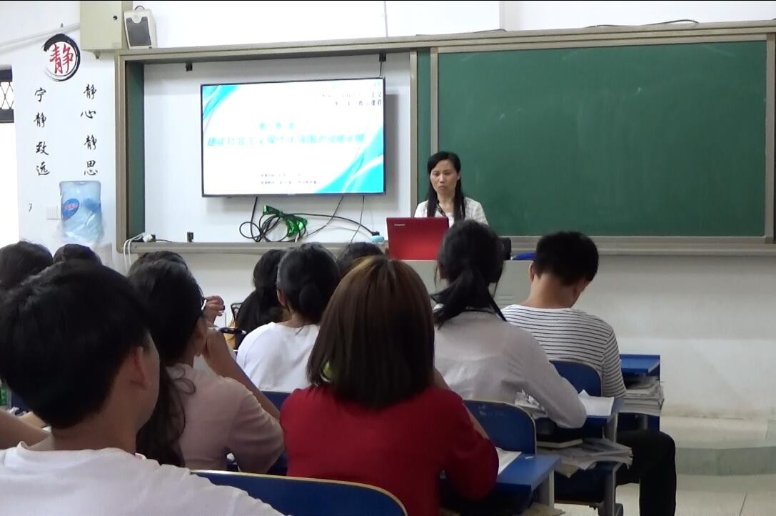 为深入推动习近平新时代中国特色社会主义思想进教材、进课堂、进头脑, 6月19日,我校在教学楼212教室开展了思政骨干教师示范课活动。在学校领导的高度重视下,思政部积极筹划,推选了理论功底扎实、教学经验丰富的谭秋霞老师主讲的示范课。