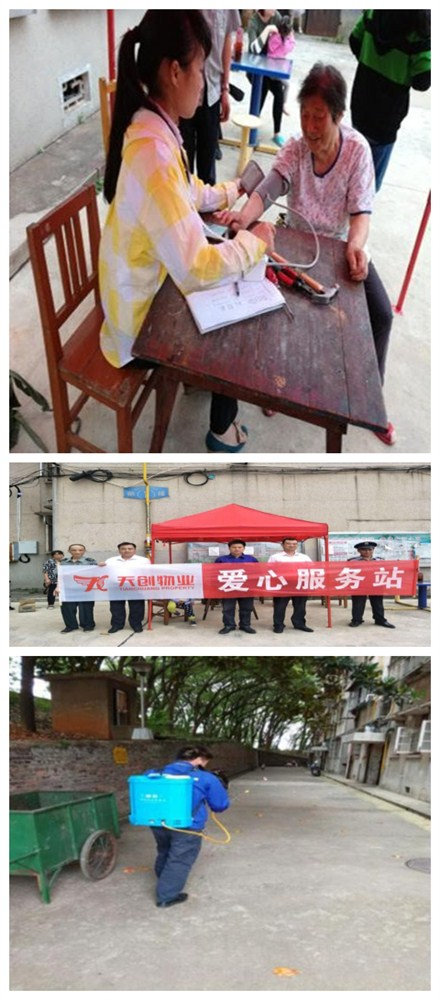 此次活动分为三个部分:一是提供4项免费维修服务(换插座、开关;水龙头;更换日光灯管;小家电维修)。家属区居住的都是退休的教职工和在校老师,有的家里换个灯泡插座没时间工作太忙,有的自己操作不方便怕摔倒,有的线路问题发现不了导致家里经常跳闸。这些问题物业公司的维修工都能解决。二是免费测量血压。主要是关爱退休老职工的身体,为他们测量血压跟他们嘘寒问暖,提醒他们换季时节要注意饮食。 三是开展除4害活动,喷洒灭虫农药。对家属区屋前屋后的水渠和化粪池喷洒灭4害药品,以免教职工受蚊虫鼠蚁的骚扰。