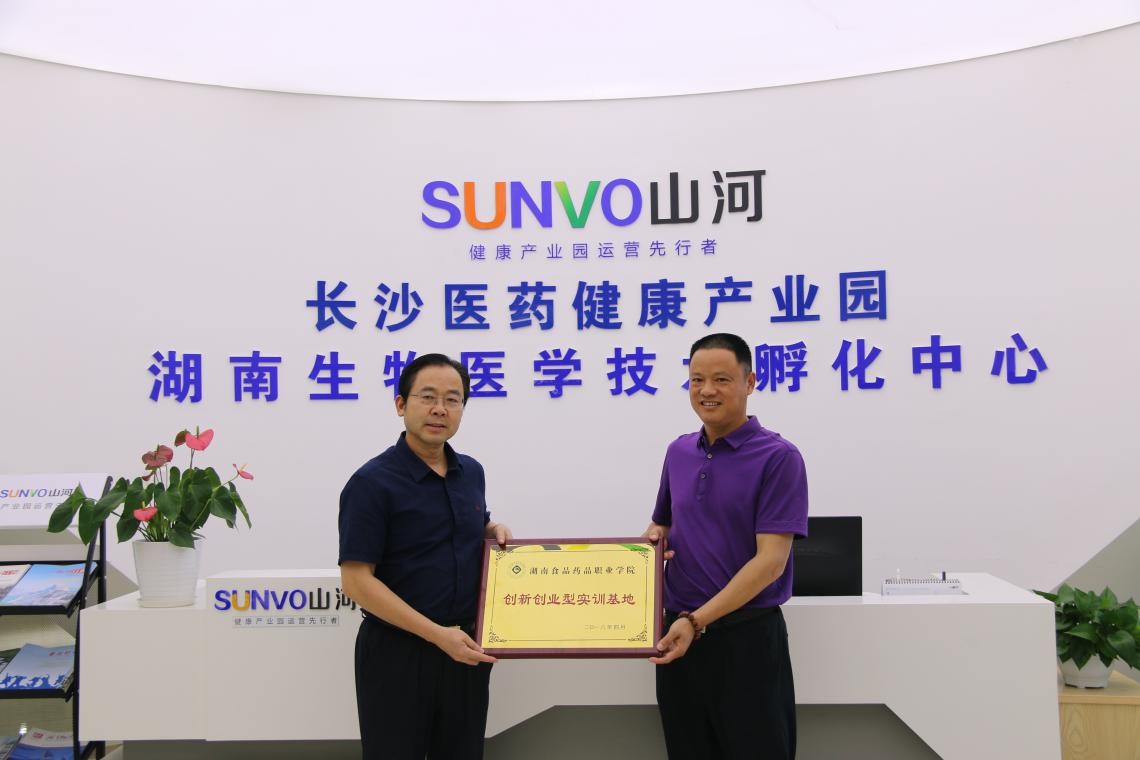 5月31日上午,党委副书记、校长虢剑波、副校长邓兴国带领招生就业处同志到长沙医药健康产业园考察,主要洽谈工学交替、企业用人需求等事宜,与长沙医药健康产业园达成创新创业基地共建合作意向,并进行创新创业型实训基地授牌。