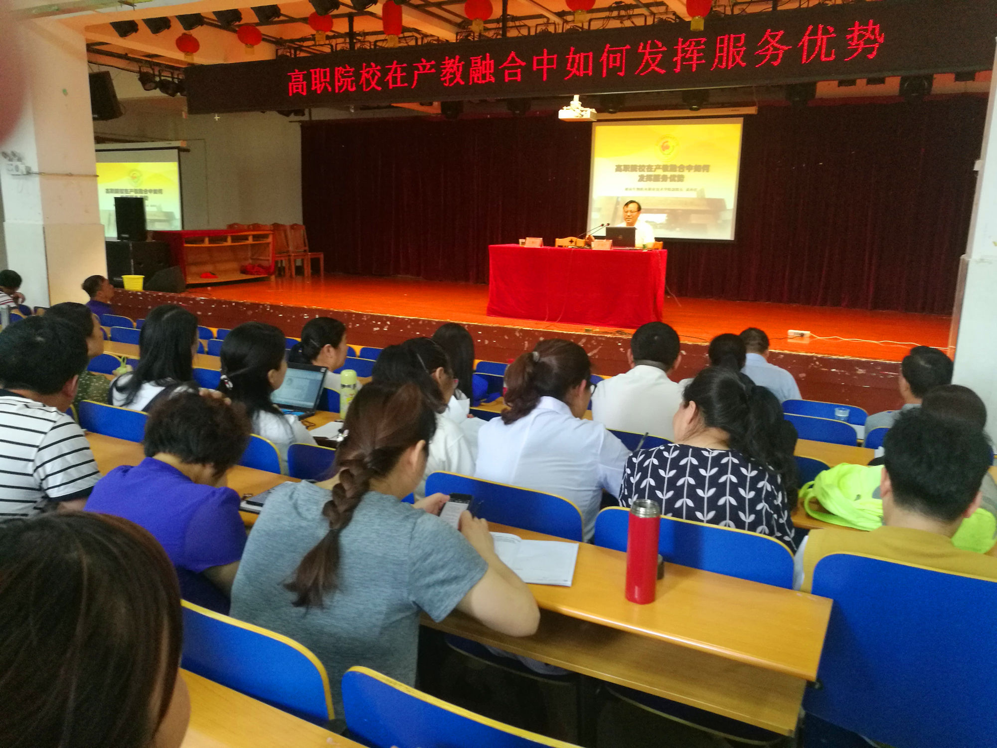 为进一步推进学校产教融合、校企合作工作,提升广大教师的科技创新意识和社会服务能力,我校于5月29日下午举办了科研社会服务专题讲座。本次讲座特别邀请了国家农业职教名师、湖南生物机电职业技术学院谈再红副院长主讲,主题为“高职院校在产教融合中如何发挥服务优势”,由党委委员、副校长张雪昀主持,全体教职工参加了本次讲座。