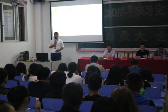 5月31日晚,洞井学院举行了2016级中技学生实习动员大会。院长刘喜红,党总支书记贺斌,湖南可孚医疗科技发展有限公司(简称“可孚”公司)人力资源主管王珩,全体实习学生参加了本次大会。大会由副院长熊伟主持。