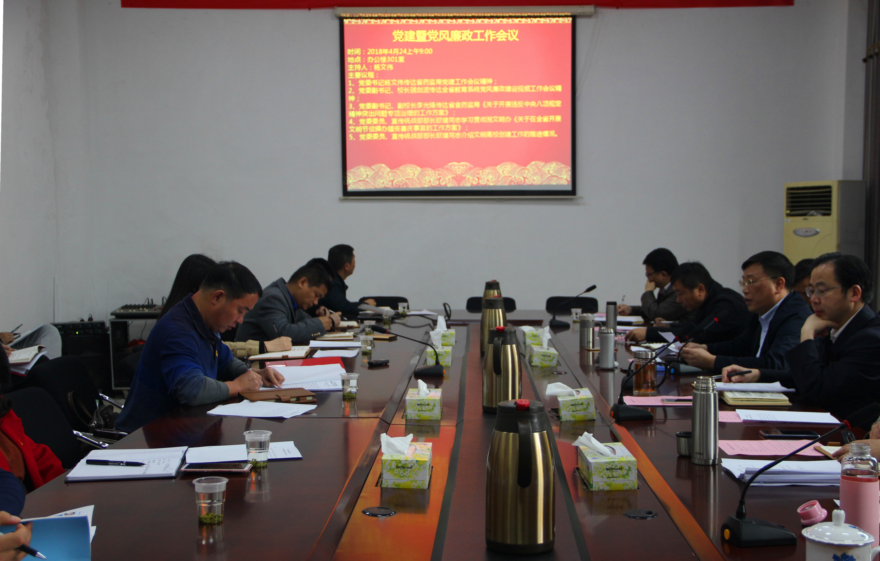 会议传达了省局党建工作会议、全省教育系统党风廉政建设视频工作会议、全省教育系统维稳综治安全工作会议、结核病防控工作会议精神,学习了省局《关于开展违反中央八项规定精神突出问题专项治理的工作方案》和省文明办《关于在全省开展文明节俭操办婚丧喜庆事宜的工作方案》等文件,并就下一步贯彻落实会议文件精神,结合学校党建暨党风廉政建设工作的开展进行了部署。