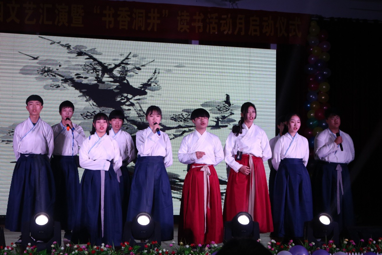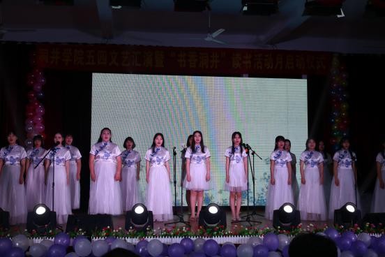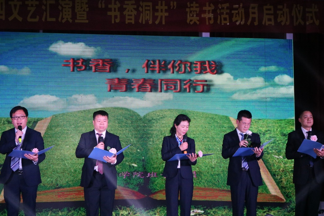 为弘扬五四精神,培养阅读习惯,4月26日,洞井学院举办了五四文艺汇演暨“书香洞井”读书活动月启动仪式。学校党委副书记、校长虢剑波、党委委员、副校长唐荣华、各二级学院党总支书记及相关部门负责人出席了本次晚会。 晚会节目精彩纷呈,集结了舞蹈、声乐、朗诵、相声、武术等多种表演形式。在动感的开场舞蹈和节奏明快的b-box音乐中,晚会拉开了序幕。古典舞《花非花》及民族舞《花腰红》让我们体验到了古典和民族文化的魅力;音乐社的阿卡贝拉无伴奏人声合唱《青花瓷》则以动听的声音和人体打击节奏的方式向我们诠释了流行合唱的美;语言社的诗歌朗诵《进酒梦千年》向我们展示了中华传统文化的博大精深;武术表演擒体拳刚劲有力、虎虎生风;药学院的同学带来的美声二重唱《我的祖国》也是让人眼前一亮。 “书香洞井”读书活动月启动仪式将晚会推向高潮。洞井学院班子成员集体朗诵《书香,伴你我青春同行》慷慨激昂,情真意切,“立君子品,读圣贤书,与经典同行,与圣贤为伍”的读书口号更是声声入耳,揭开了启动仪式的序幕。党总支书记贺斌致开幕辞,号召同学们在博大精深的中国文化中汲取知识的力量,副院长熊伟详细解读了活动实施方案,院长刘喜红宣布洞井学院“书香洞井”读书活动月正式启动。 晚会以纪念五四运动99周年为契机,学生团总支副书记李奕带领新团员在庄严地进行了入团宣誓。