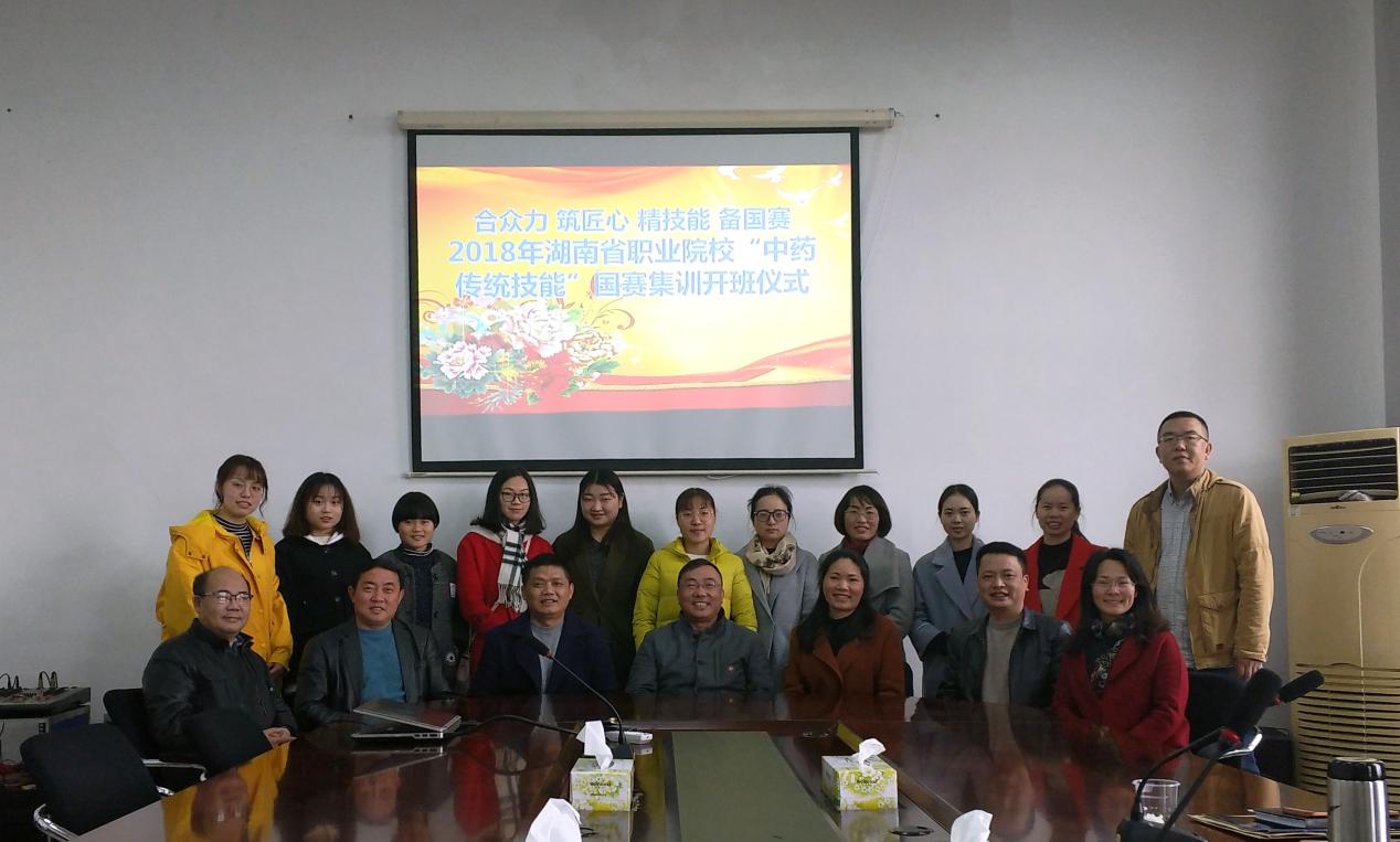 全国职业院校高职中药传统技能竞赛是检验我国职业院校中药专业建设,教育、教学改革成果,促进中药传统技能传承,弘扬工匠精神的重要赛项之一。为了切实提高我省参赛选手的综合能力,以优异的成绩备战国赛,3月20日上午,在我校办公楼301会议室举行了2018年湖南省职业院校高职中药传统技能竞赛国赛集训开班仪式。学校党委委员、副校长张雪昀,各相关部门负责人、湖南中医药高等专科学校、常德职院、永州职院等参训学校有关领导、指导老师及参训选手出席了仪式,教务处处长李时菊主持。