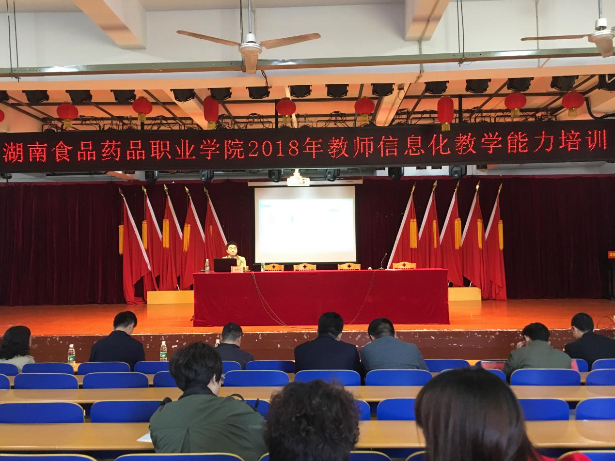 2018年3月27日下午,中国健康传媒集团中国医药科技出版社教材中心匡罗均主任一行来我校调研,并对我校教师进行了一次信息化教学能力提升的专题培训,全校近140名老师参加了培训。