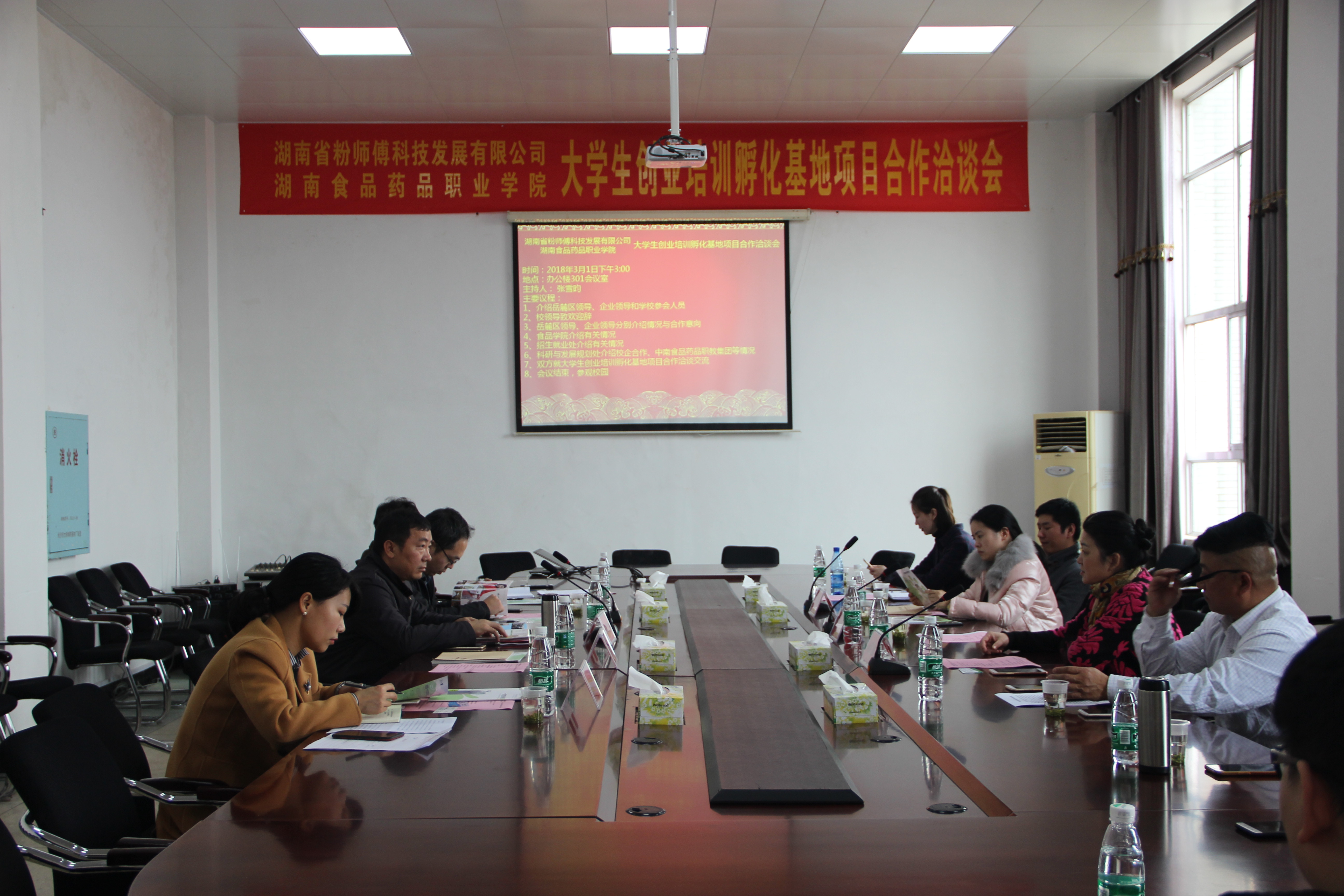 3月1日下午,岳麓区区校合作办主任张双武博士、岳麓科技产业园招商合作局周敏局长、湖南省粉师傅机械科技股份有限公司程江凌董事长一行来访我校。粉师傅机械科技股份有限公司与我校就大学生创业培训孵化基地合作项目进行了洽谈,学校党委委员、副校长张雪昀和科研与发展规划处、食品学院、招生就业处负责人参加了洽谈。