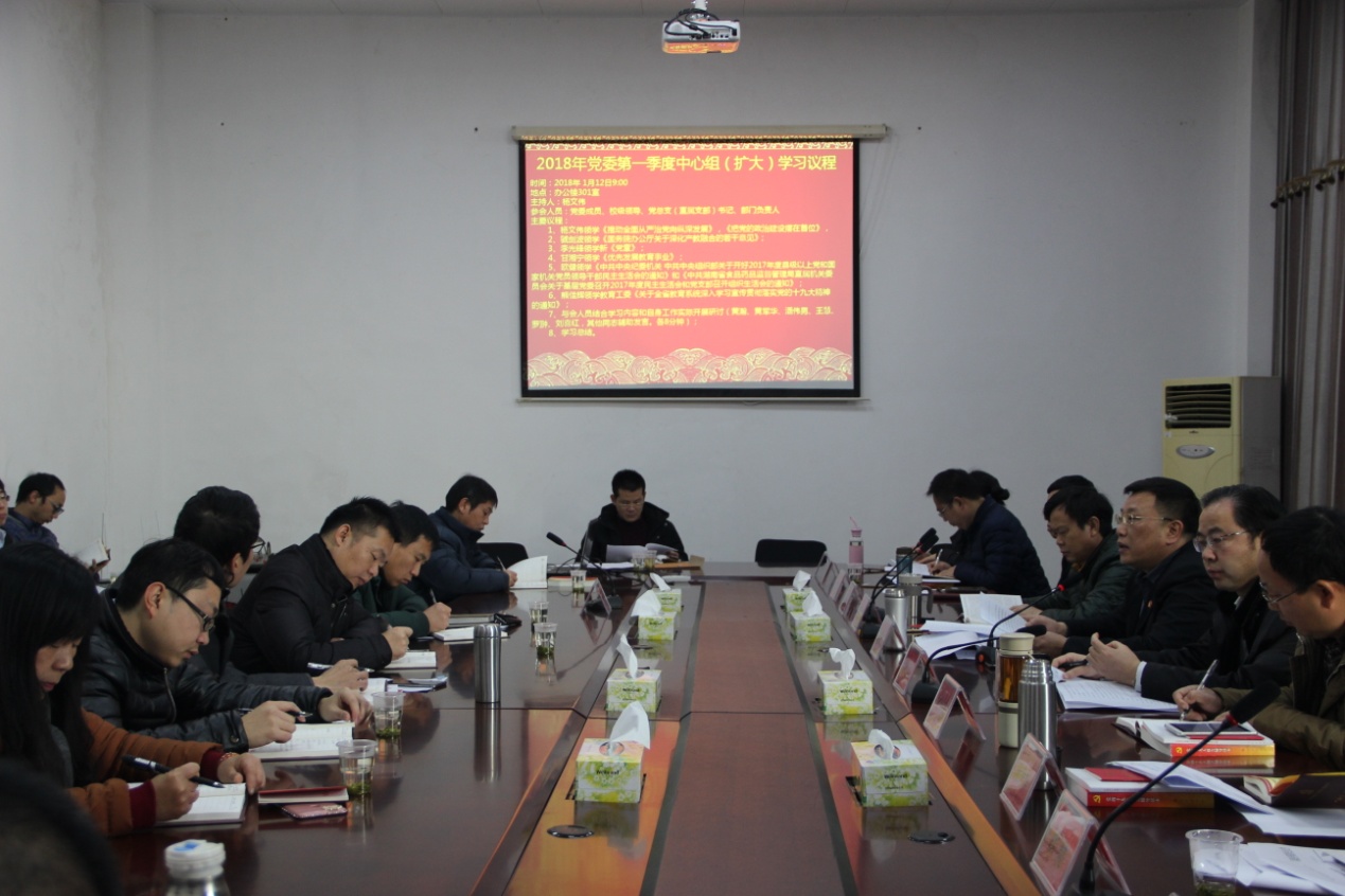 1月12日上午,学校在办公楼301会议室组织2018年党委第一季度中心组(扩大)集中学习会议。全体党委委员、校级领导、党总支(直属支部)书记、各部门负责人参加了学习,党委书记杨文伟主持会议。