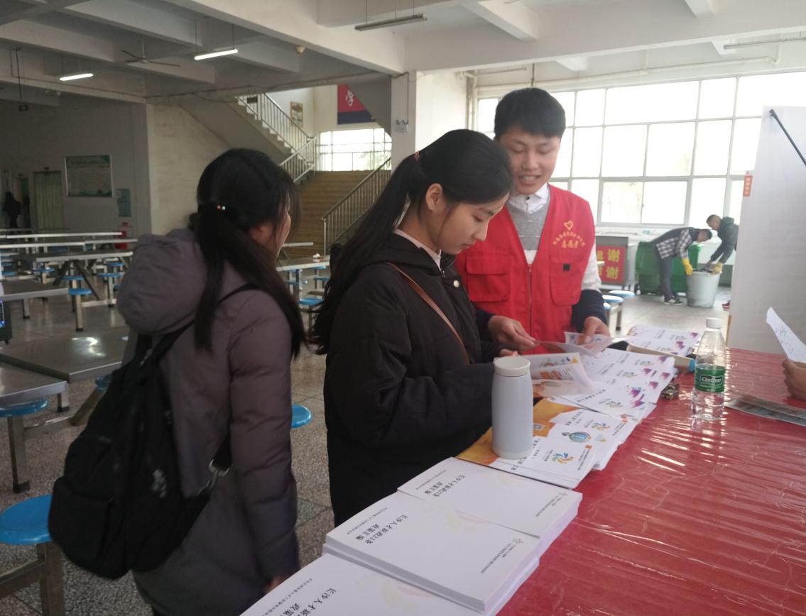 12月4日中午,长沙人才新政进院校宣传活动走进了湖南食品药品职业学院。今天是难得一见的大晴天,但是大风依旧不减,寒风刺骨,这并没有打击志愿者们的激情,志愿者们将宣传活动现场由食堂门口调整到食堂一楼。大家齐心协力地布置好了人才新政宣传现场,并立马投入到了火热的宣传工作中。