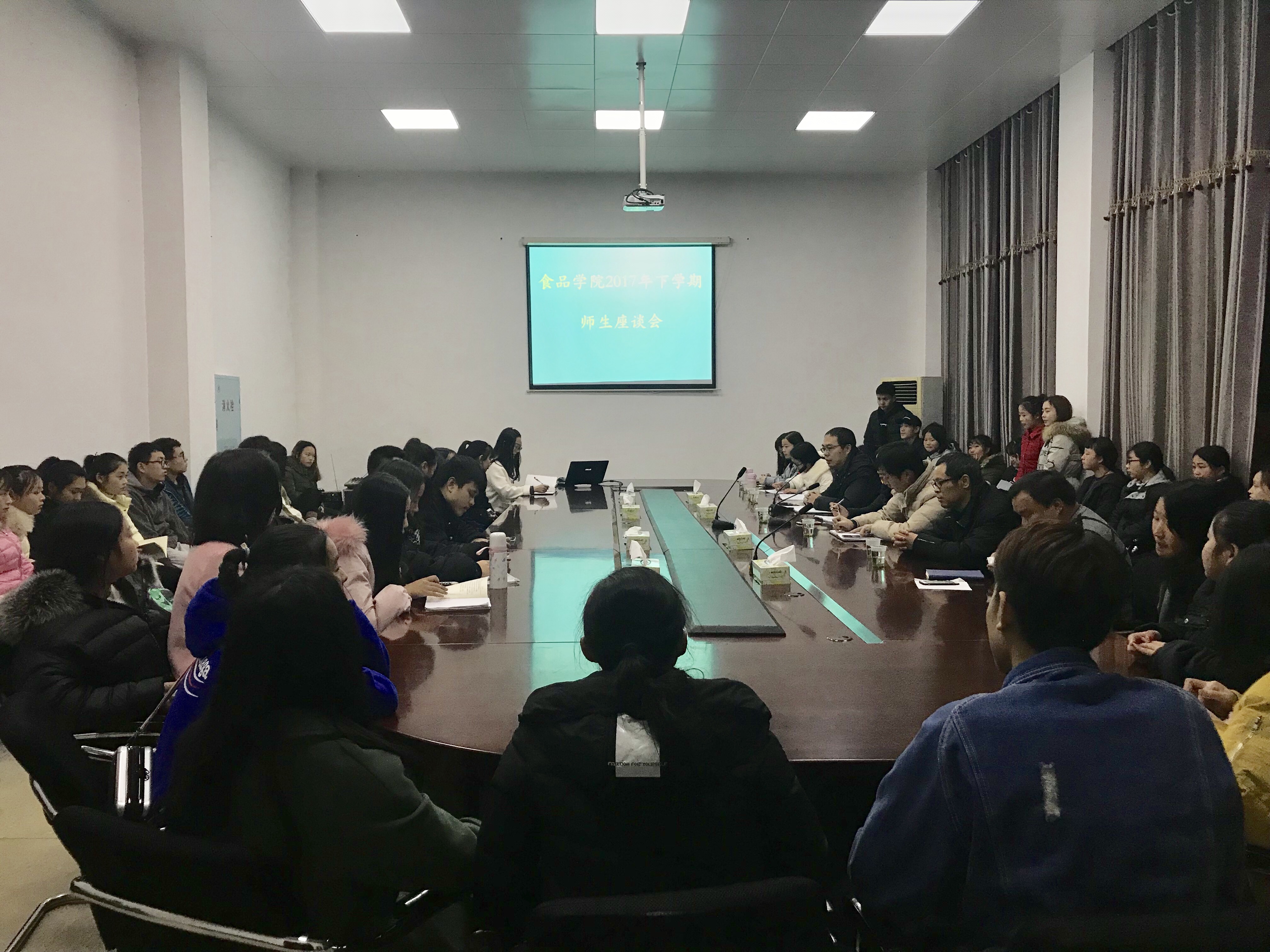 12月21日晚,食品学院在办公楼301会议室召开了2017年下学期师生座谈会。本次会议由学院党总支书记主持,学院老师及学生代表近60人参加了本次会议。