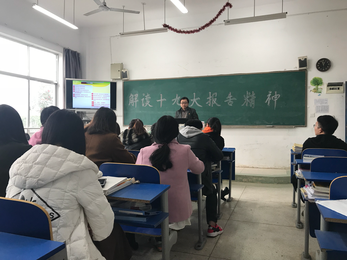 11月15日我校召开青年教师学习十九大精神专题学习研讨会,校团委书记、教工团支部书记、以及各二级学院青年教师代表参加了学习研讨会。学习研讨会由教工团支部书记主持,校团委书记领学“十九大”报告。