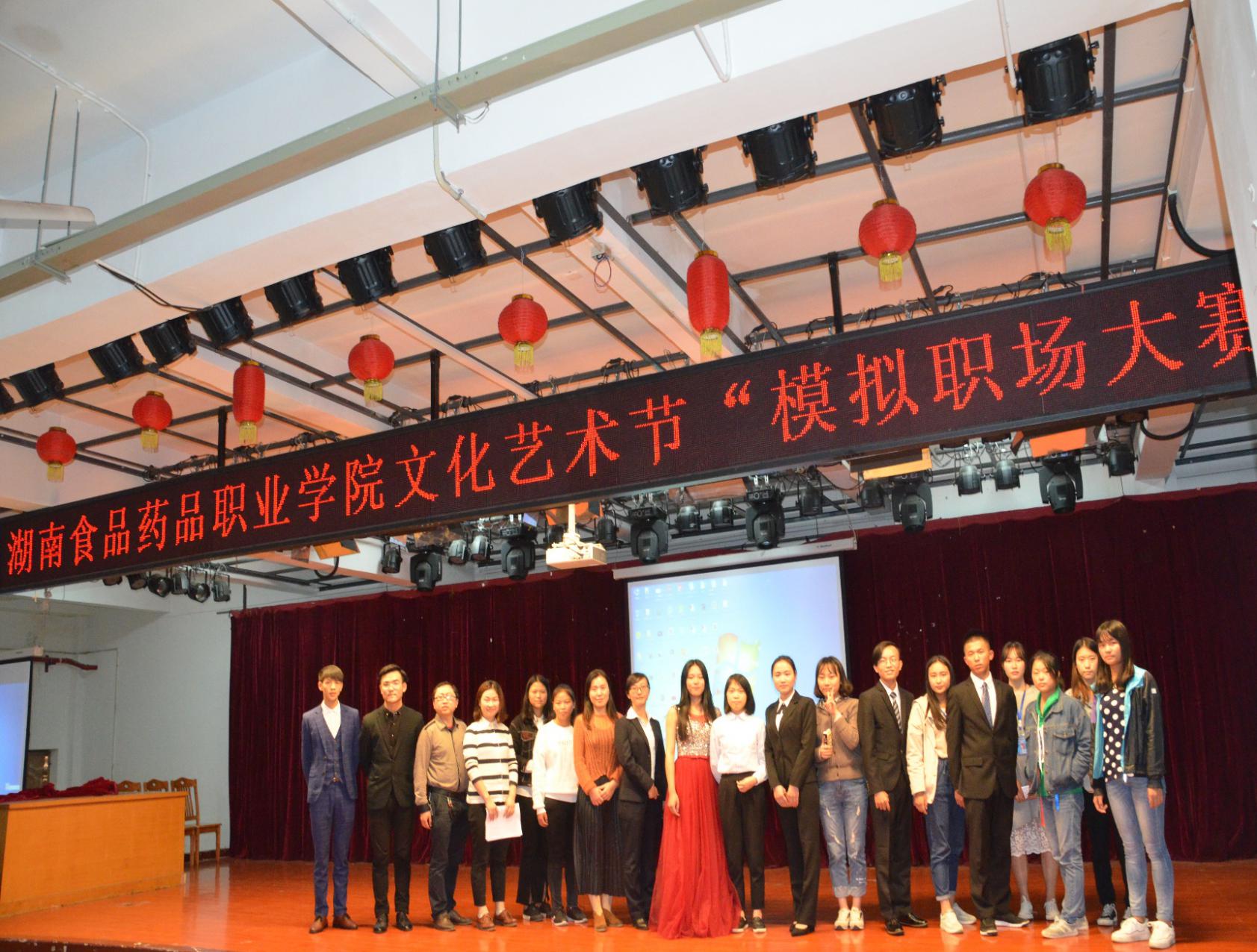 2017年10月24日,由校团委主办,经管学院承办的校园文化艺术节“模拟职场”比赛在小礼堂举行,比赛邀请养天和大药房人力资源部经理,学校相关部门领导担任评委。