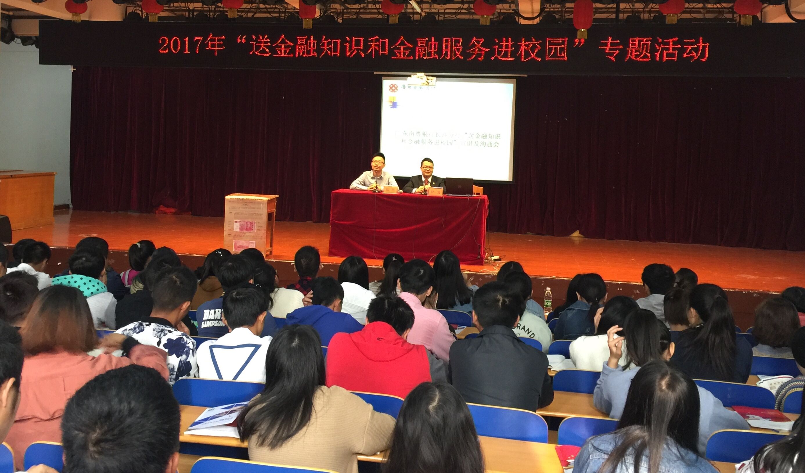 2017年11月4日上午,由湖南银监局、湖南省教育厅主办,湖南省金融团工委、湖南省银行业协会,村镇银行协会协办的“送金融知识和金融服务进校园”活动在湖南食品药品职业学院多功能报告厅举行。此次活动由广东南粤银行长沙分行运营主管甘勇主讲,学保处领导主持。