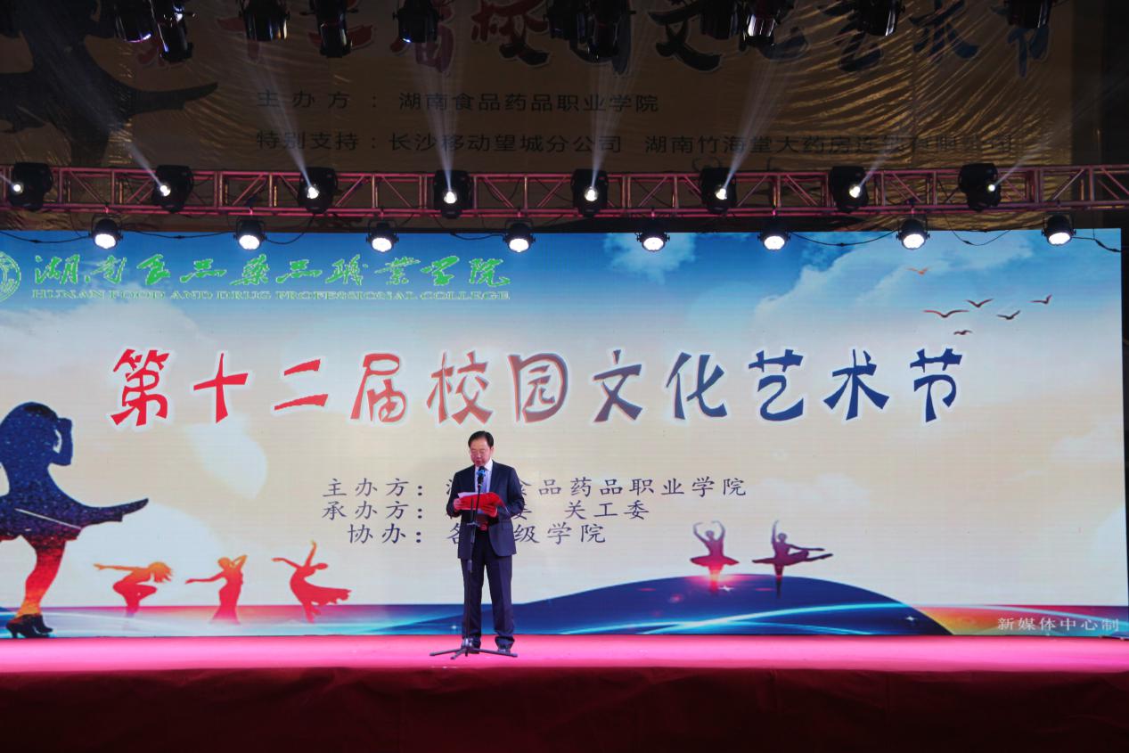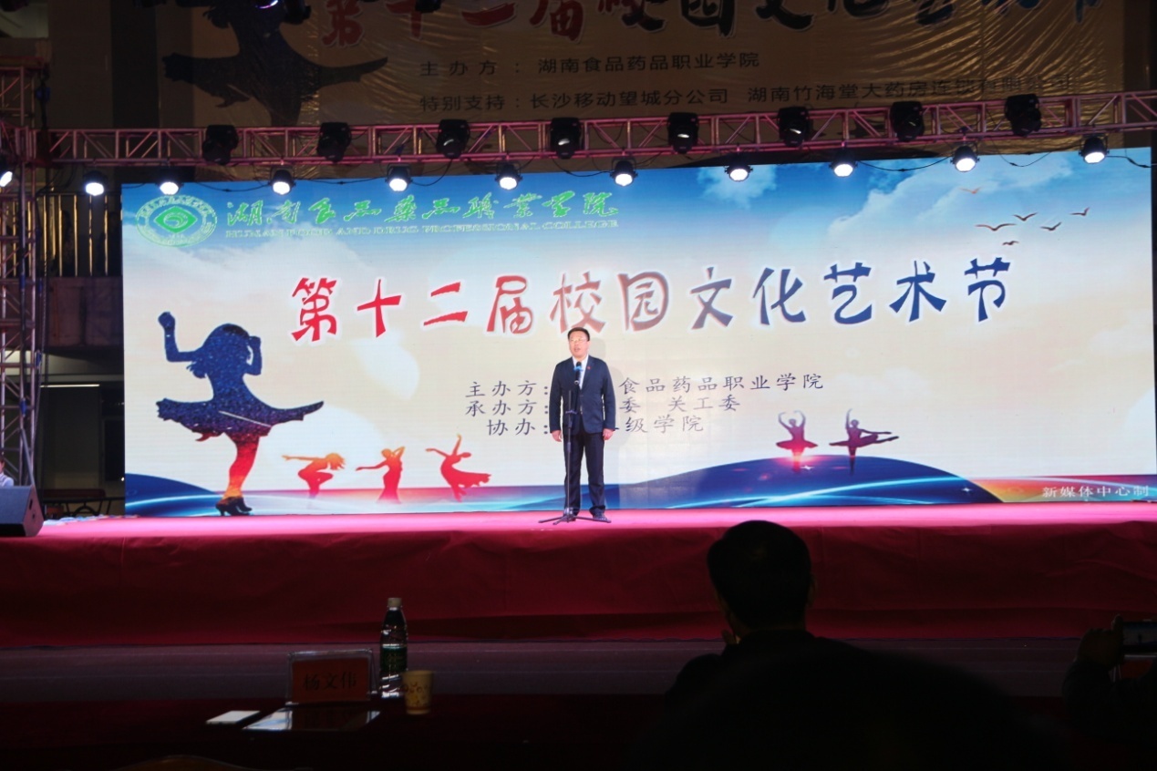 随后由我校党委书记杨文伟宣布:“湖南食品药品职业学院第十二届校园文化艺术节开幕”。