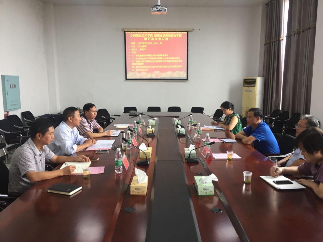 9月21日上午,永州职业技术学院副院长窦铁生一行来我校就教学用房和校内实验实训用房规划、建设布局进行调研。学校党委委员、副校长张雪昀、唐荣华及后勤与资产管理处、教务处等有关负责人参加调研座谈会。