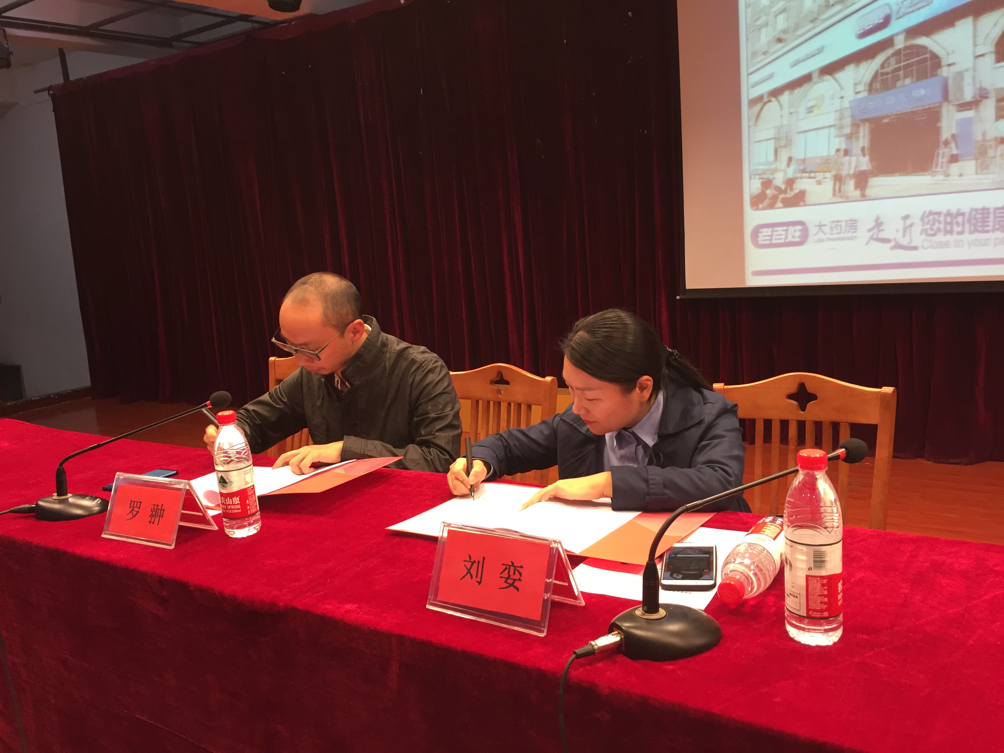 典礼上,首先由党总支书记致欢迎辞,她对校企合作单位老百姓大药房表示衷心感谢,对17级订单班同学表示热烈欢迎,同时欢迎对16级订单班所取得的成绩表示充分肯定。然后刘娈讲话,她对学院和老百姓公司在过往合作中取得的喜人成绩给予充分肯定,对新一届订单班同学寄予了殷切期望。学院负责人宣读了2016-2017年度老百姓奖学金表彰决定,获奖学生代表作了学院、企业的感谢及对未来的展望表态性发言。接下来,校企双方举行了签约和授牌仪式,对药品经营17303班授予了校企合作老百姓“订单班”牌匾。最后,由刘娈部长给17级订单班上了一堂生动有趣的企业文化课。