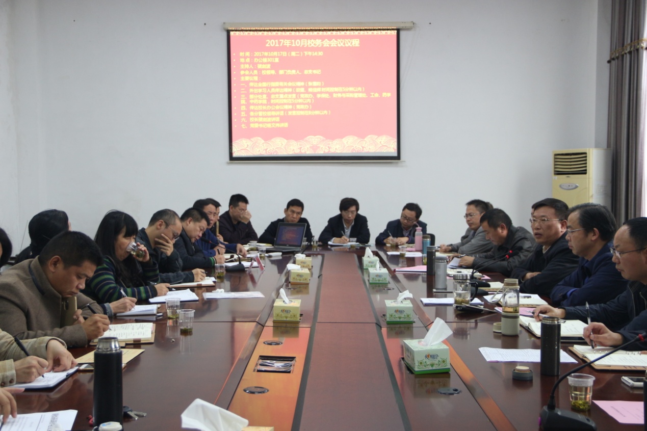 10月17日,学校召开十月份校务会,全体校领导、部门负责人、党总支部书记参加会议,党委副书记、校长虢剑波主持会议。