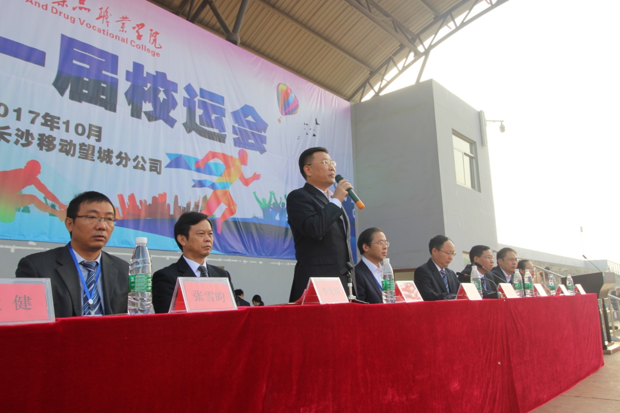 10月27日上午,湖南食品药品职业学院第二十一届校运会在田径场举行,学校校领导及相关部门负责人出席了开幕式。会议由党委委员、副校长邓兴国主持。