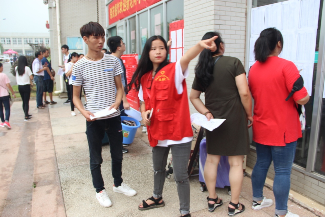 新生在家长的陪同下来到学校后,就被迎接的学生志愿者热情地接到了各自二级学院的报到现场,全程在志愿者的陪同下办理入学各项手续,使新生入学的手续在短短几分钟就完成了,大大的方便了新生。