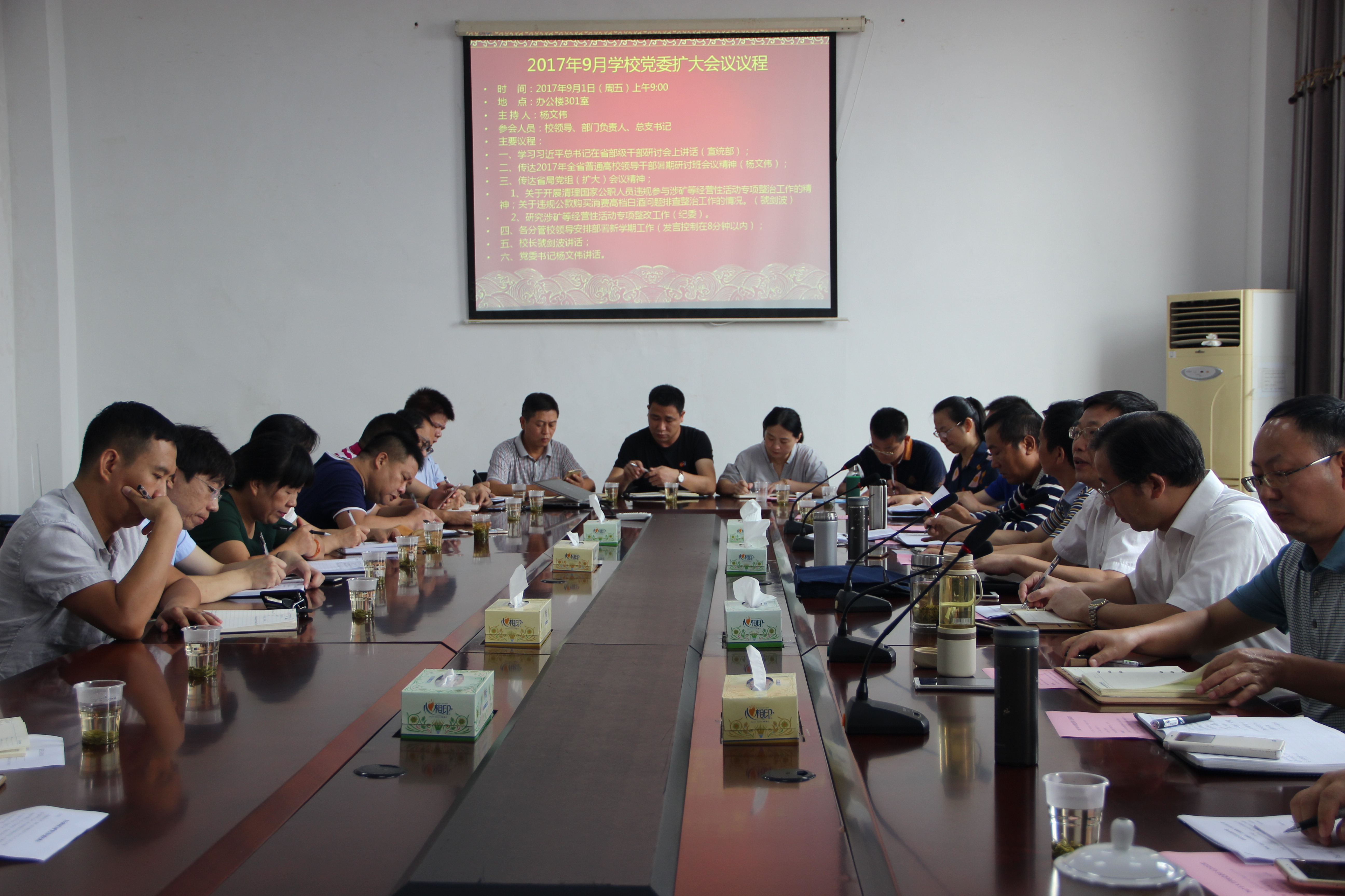 学校全体校领导、各部门负责人、党总支书记参加党委扩大会议