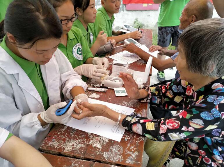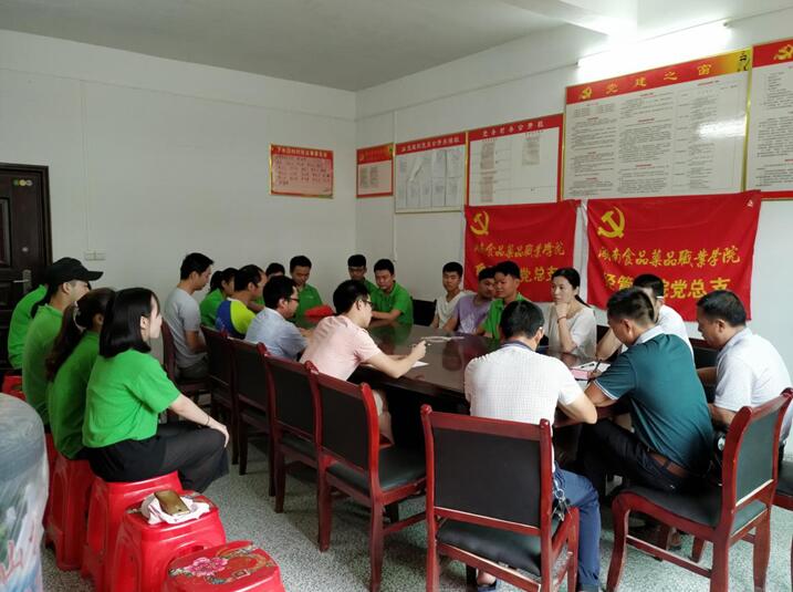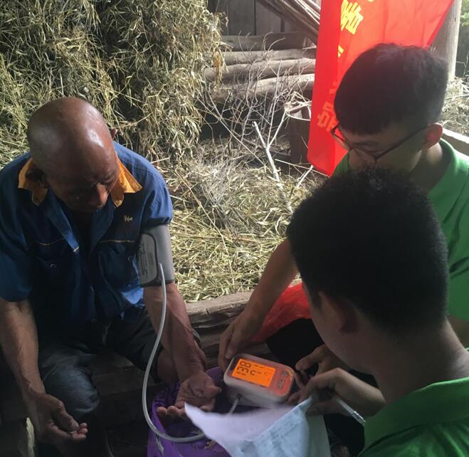“三下乡”团队在当地村委会带领下冒着大雨上门看望下水田村5户 “五保户”老人,逐一为他们测量了血糖、血压并送上了慰问物资。师生们还为当地的老人量血压、测血糖、使用人体成分分析仪检测老人们的身体情况,并通过填写问卷了对他们的健康和生活状况进行调研,同时进行了食品营养知识宣传,并给村里的“五保户”老人送上了慰问品。最后,还走访、慰问了当地党员,了解党员的感人事迹;入党积极分子们结合活动感想进行了现场思想汇报;老师和同学都谈及了此次“三下乡”活动的感受和收获。
