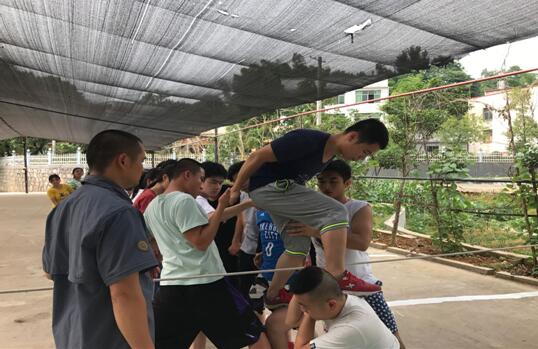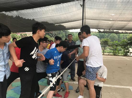 上午九点,拓展活动正式开始,全体成员被分成了三支队伍,随后在教官的帮助下各队进行了团队文化建设,选举了队长、副队长、队秘、旗手,确定了队名、团队口号及队歌,并接受教官的检阅。在拓展活动中,队友间的团队意识逐渐加强,在竞赛项目中队员们的创新意识不断被激起,尤其在众志成城和毕业绳项目中队员们充分感受到勇敢和信任的力量。
